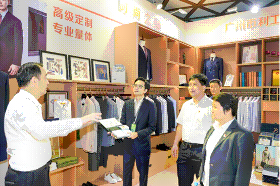 在共建活動(dòng)中,大家來到廣東時(shí)裝周的利工民主題展位前,深入了解利工民服裝定制業(yè)務(wù)開展情況。廣東省服裝服飾行業(yè)協(xié)會(huì)黨支部書記劉岳屏介紹了目前廣東服裝定制的整體情況以及相關(guān)智能制造企業(yè)情況。雙方就如何加強(qiáng)資源共享,促進(jìn)服裝定制服務(wù)做強(qiáng)做大,助力廣東定制“出圈”“破圈”進(jìn)行了交流探討。